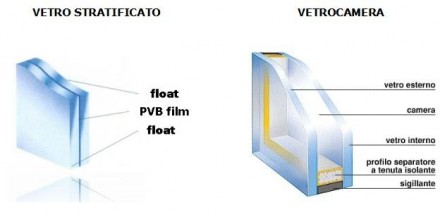 Utilizzando per la lastra interna un vetro stratificato assemblato con una o più pellicole plastiche, nel caso di rottura accidentale di tale lastra, i frammenti di vetro restano attaccati alla pellicola stessa, scongiurando infortuni da taglio e cadute nel vuoto.